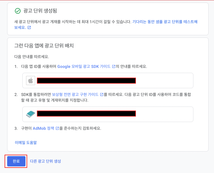 광고 단위 이름을 입력 > 광고 단위 만들기 클릭