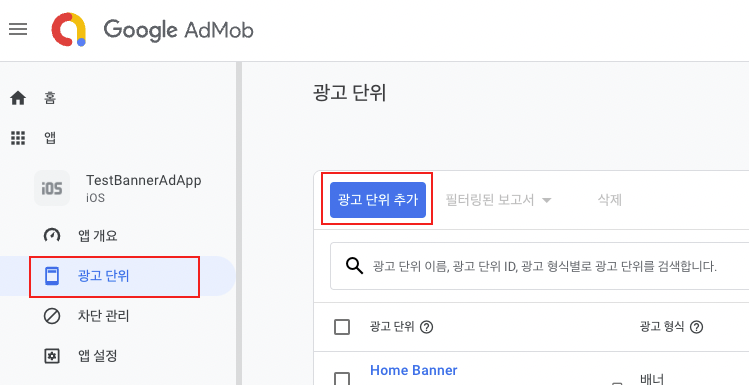 광고 단위 클릭 > 광고 단위 추가 클릭