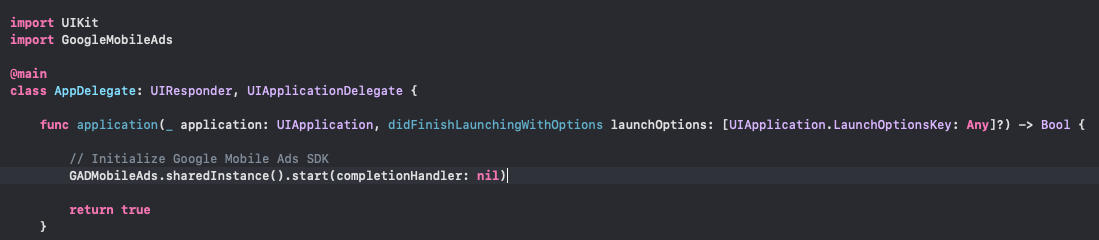 GADMobileAds.sharedInstance().start(completionHandler: nil)