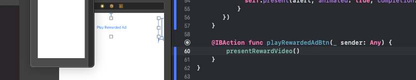 @IBAction func playRewardedAdBtn(_ sender: Any) {