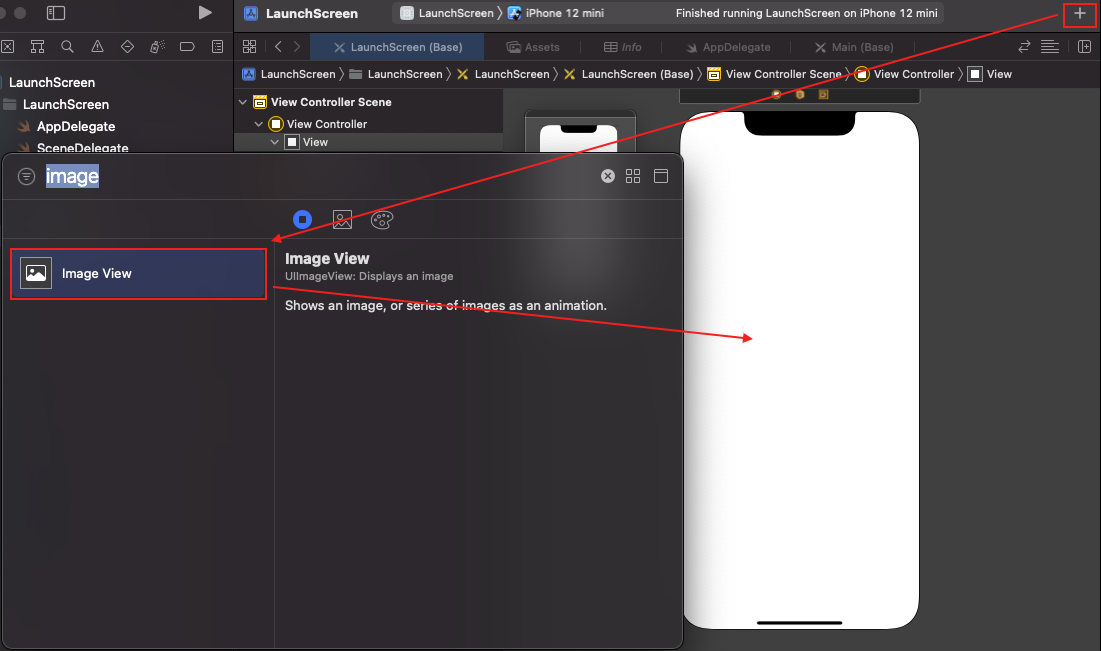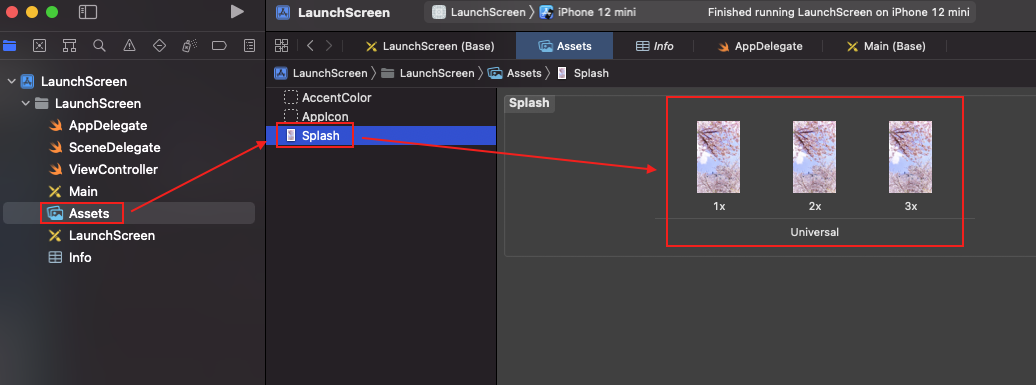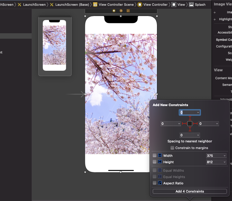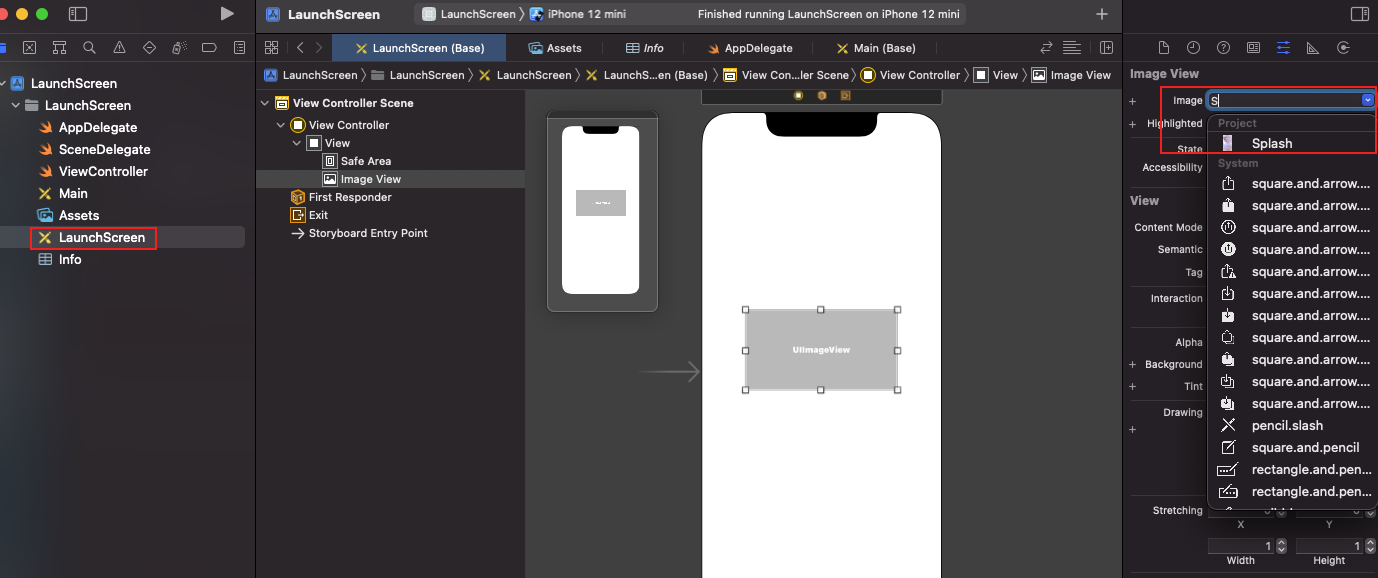4. LaunchScreen 선택 > Image에서 Splash 선택합니다.