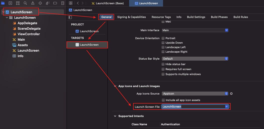 App icons and Launch Images에 Launch Screen File에 LaunchScreen으로 설정되어 있는 확인 합니다.