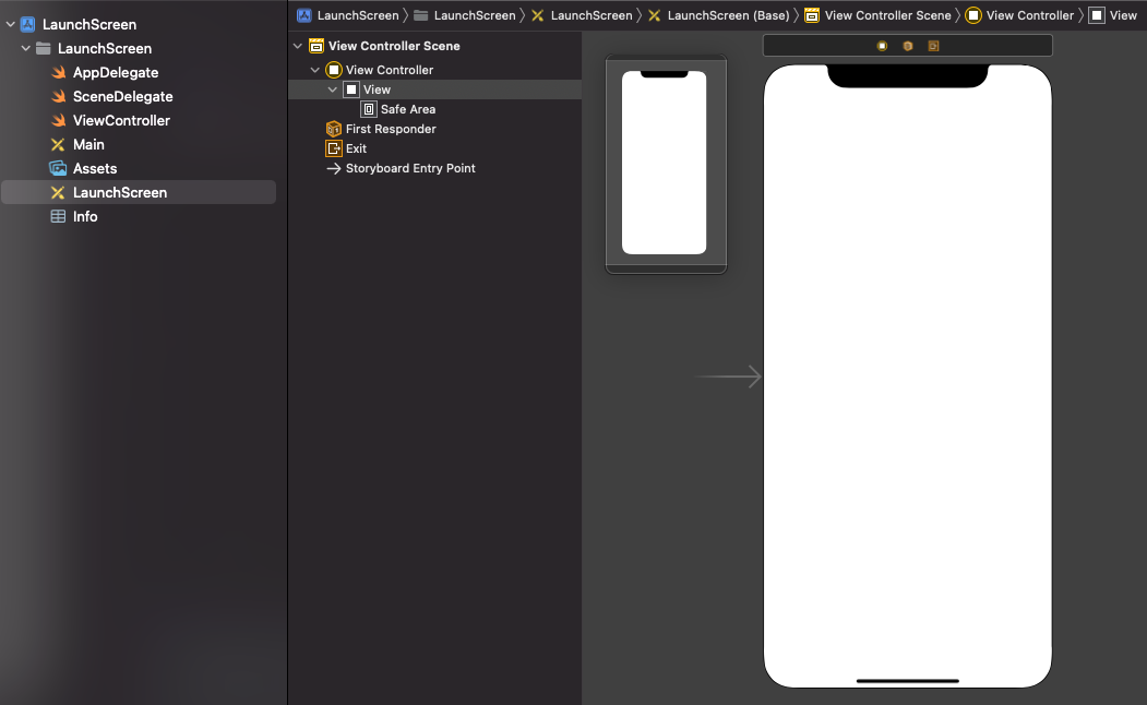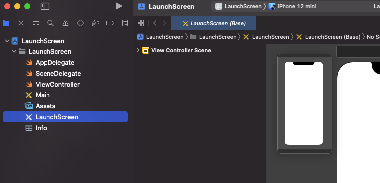 2. 프로젝트를 생성하면 LaunchScreen이라는 파일이 처음부터 존재합니다. 파일을 선택합니다.