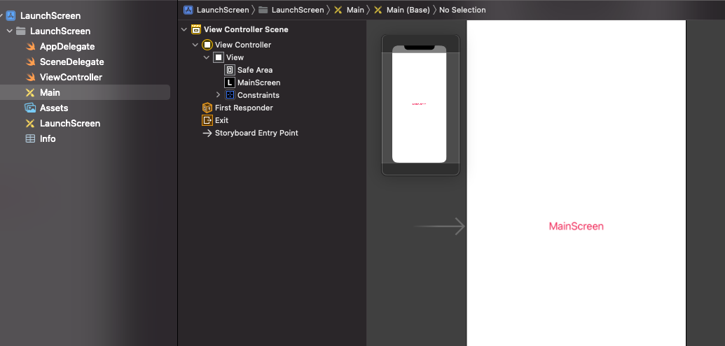 5. LaunchScreen이 Splash화면의 진입점이 될 수 있도록 설정을 해주어야 합니다.